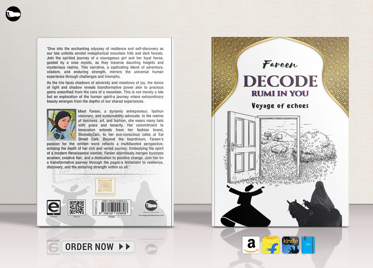 “Decode Rumi in You: Voyage of Echoes” by Fareen invites readers on a mesmerizing journey through the landscapes of resilience and self-discovery. Set against the backdrop of metaphorical mountain hills and dark forests, the narrative follows a courageous girl and her loyal horse, guided by a wise mystic, as they navigate through daunting heights and mysterious realms.